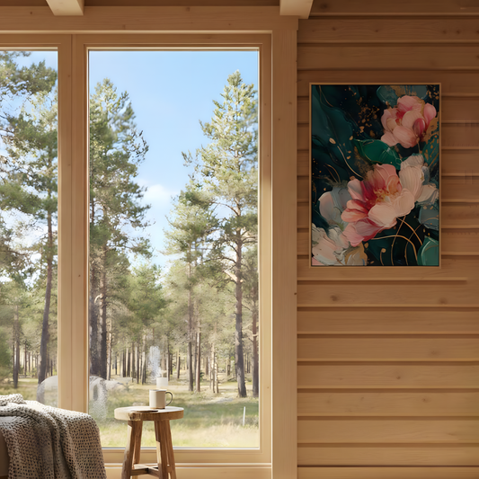 Emerald & Gold Peony Dream – Abstract Floral Canvas Wall Art