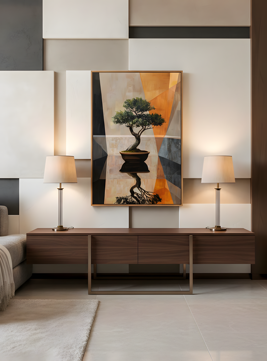 Bonsai Reflection – Modern Geometric Canvas Wall Art
