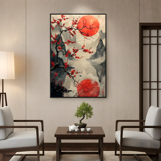 Crimson Moon – Cherry Blossom Landscape Art