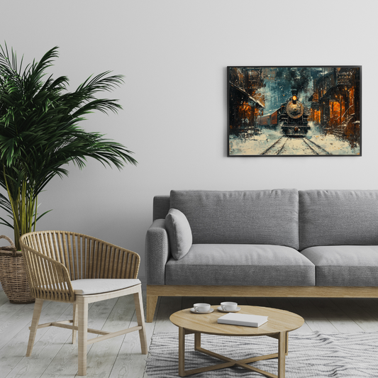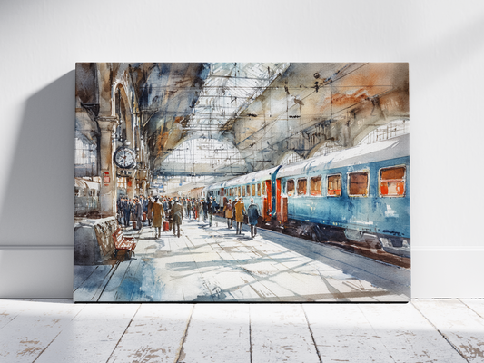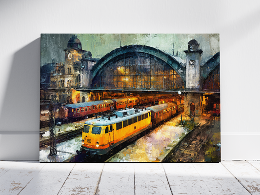 Steam Engine Station - Vintage Railway Art