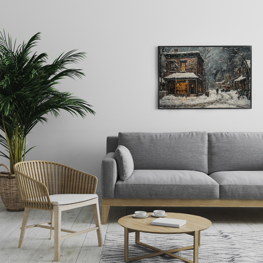 Winter Evening Drive - Vintage City Street Art Canvas Print