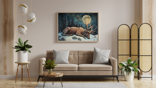 Resting Elk Under the Moon Canvas Print